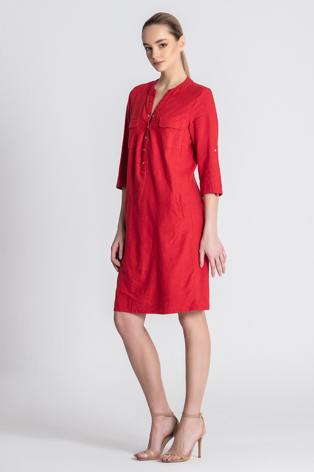 • Stretch material for a perfect fit• Style: Dress• Colour: Red• Fit: Casual fit• Length: Knee• Material: 59% Linnen, 39% viscose, 2% elastane